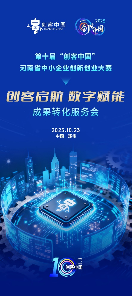 【大河财立方 记者 王磊彬】10月20日,大河财立方记者从河南省工业和信息化厅获悉,第十届“创客中国”河南省中小企业创新创业大赛“创客启航 数字赋能”·成果转化服务会将于2025年10月23日在郑州举行。