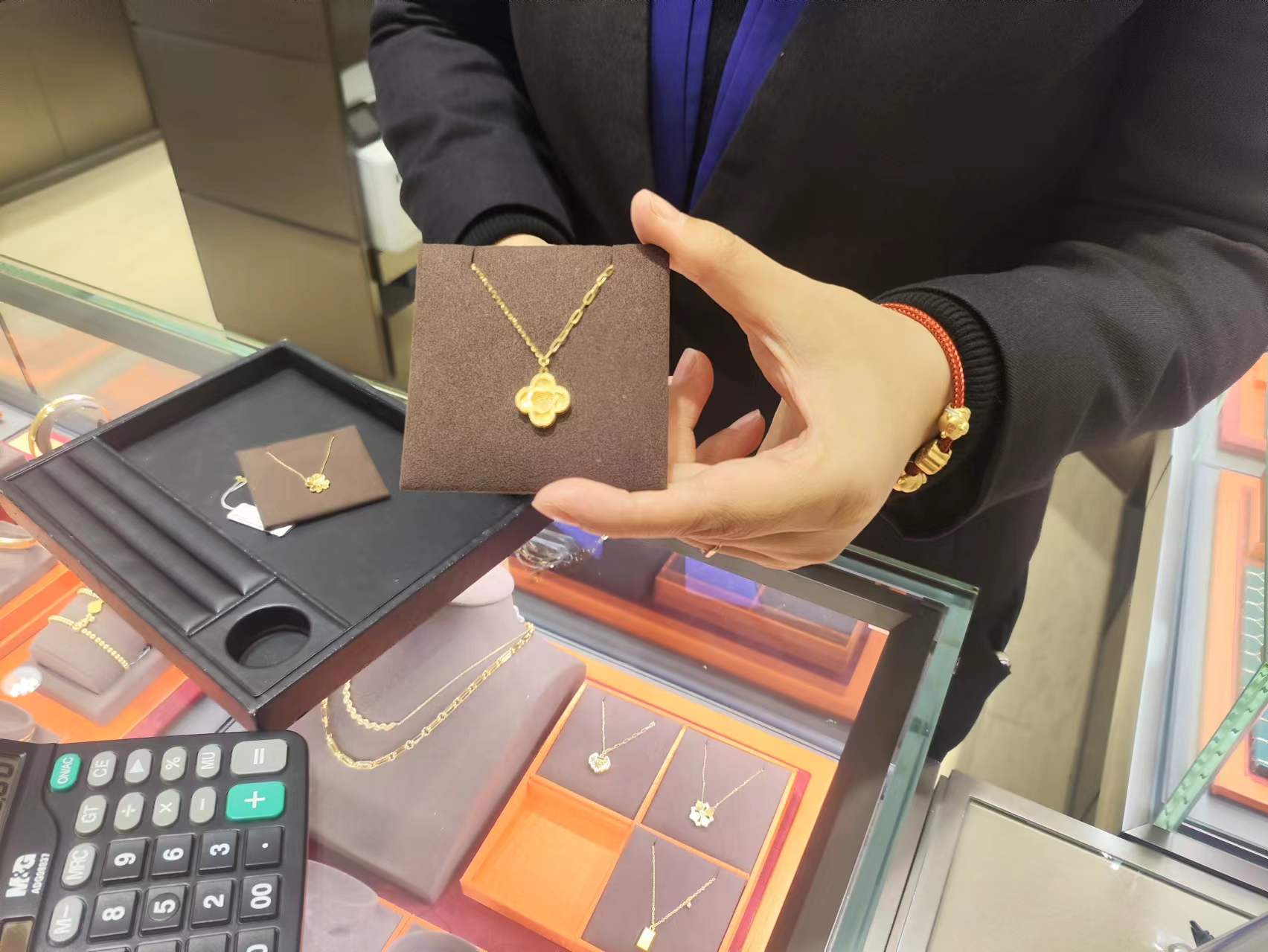 位于郑州高新区万科广场的周大福金店,10点一刻,该店工作人员就将每日金价牌子上的原1290元/克调至1235元/克。