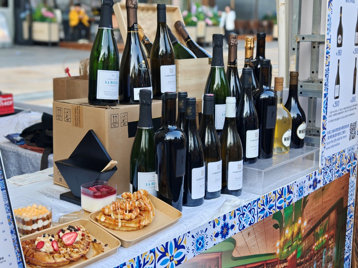 “我们的葡萄酒是智利的品牌,白兰地来自捷克,这种小瓶的威士忌买三送一。”在市集的一处摊位前,摊主热情地向过往的消费者介绍自家产品。