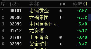 老铺黄金、周大福大跌超7%,六福集团跌超6%,周生生、中国黄金国际跌超5%。