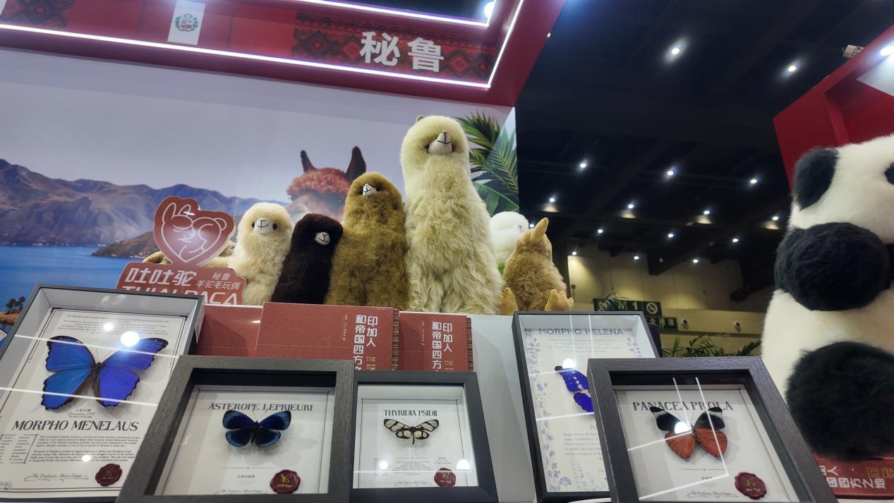 最近两年走红国内的秘鲁羊驼毛绒玩具,也让很多喜爱“撸毛”的嘉宾停不下手。这次秘鲁展厅内,不仅有羊驼、几维鸟造型的玩偶,还特别放置了一只羊驼毛做的熊猫玩偶。