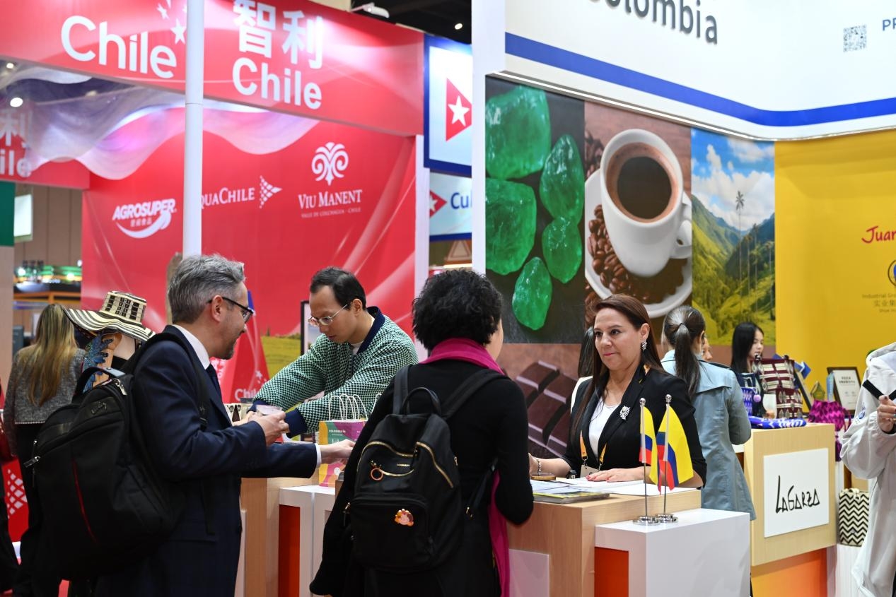 除了拉美风情十足的玩具、饰品,拉丁美洲咖啡、巧克力、朗姆酒、葡萄酒等特色食品酒水也在展示区等待与会嘉宾品尝。