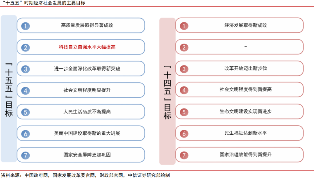 人工智能是新一轮科技革命的主动能。此前,国务院已于8月份发布《关于深入实施“人工智能+”行动的意见》,指出到2027年实现人工智能与6大重点领域融合,新一代智能终端、智能体等应用普及率超70%,到2030年人工智能全面赋能高质量发展,新一代智能终端、智能体等应用普及率超90%。结合“十五五”规划建议稿对“推动科技创新和产业创新深度融合”的表述,我们认为人工智能全面应用将迎来爆发。重点看好人工智能(算力及应用)、信创国产化两大方向。
