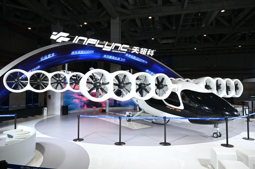 “天翎科L600最大续航可达600公里,在此次进博会上是全球首秀,会后,这款飞行器计划在无锡进行首飞。未来它会成长为一架高性能、低噪声的‘空中专车’,穿梭于城市的高楼之间,服务于人们的短途出行。”