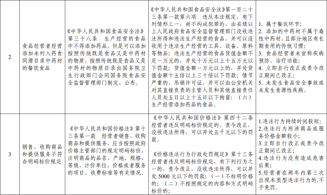 初次违法;违法行为持续时间不足1个月;未发生食品安全事故或未发生食源性疾病;人员、设施及管理符合许可要求;立即自行改正或责令改正期间已改正。