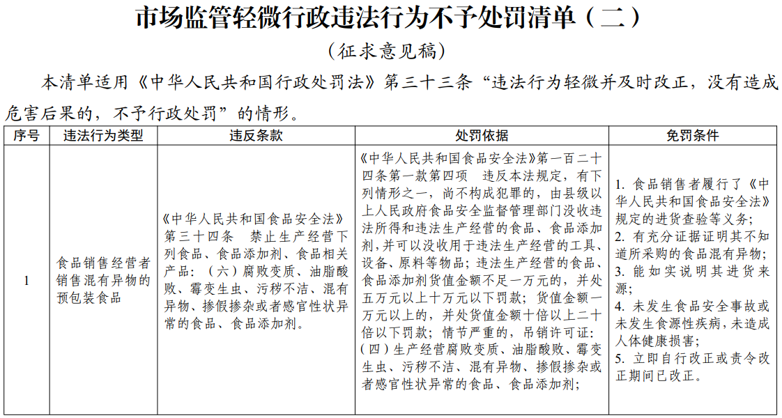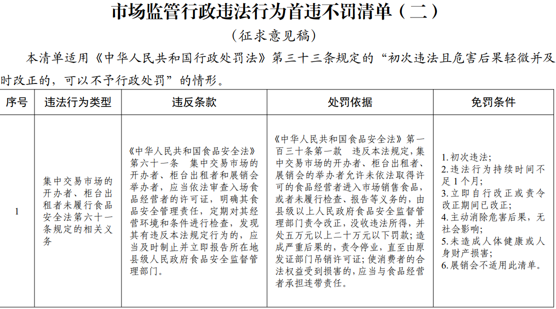【大河财立方消息】11月6日消息,市场监管总局就《市场监管行政违法行为首违不罚清单(二)、轻微免罚清单(二)(征求意见稿)》公开征求意见。