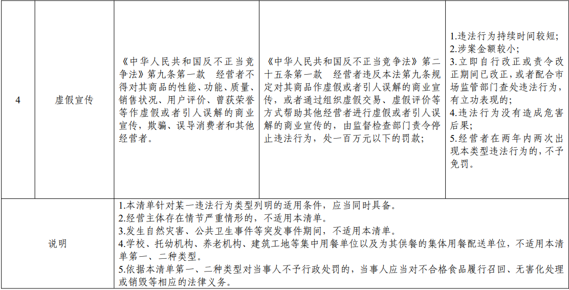 轻微免罚清单则提到,虚假宣传,若同时具备以下条件,可予以免罚: