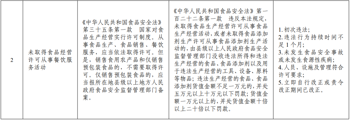 首违不罚清单提到,未取得食品经营许可从事餐饮服务活动,若同时具备以下条件,可予以免罚:
