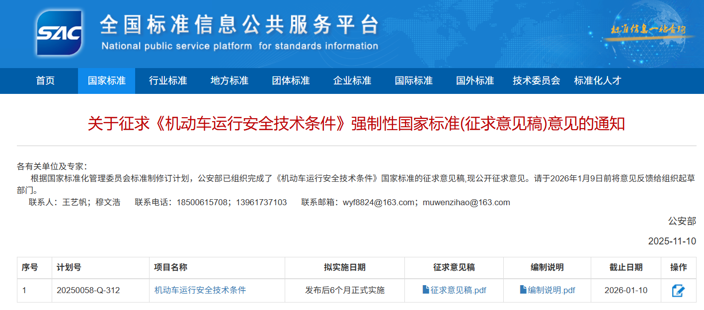 【大河财立方消息】11月13日消息,公安部日前组织完成了《机动车运行安全技术条件》国家标准的征求意见稿(下称“《条件》”)。
