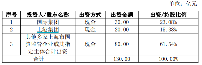 根据公告,上海国茂注册资本为130亿元,注册地上海市普陀区,股权关系上,除上港集团出资20亿元,上海国际集团将出资30亿元,其余由多家上海市国企或指定主体出资。