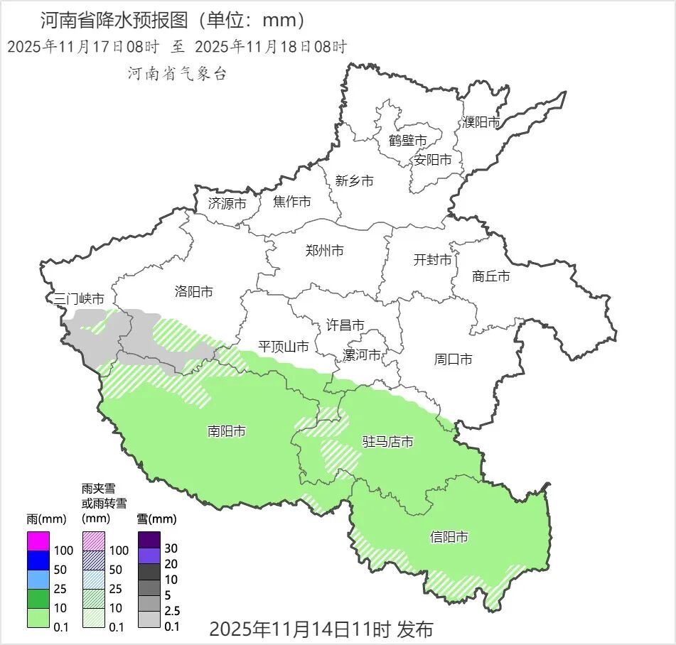 河南省气象台2025年11月14日12时发布未来三天天气预报。