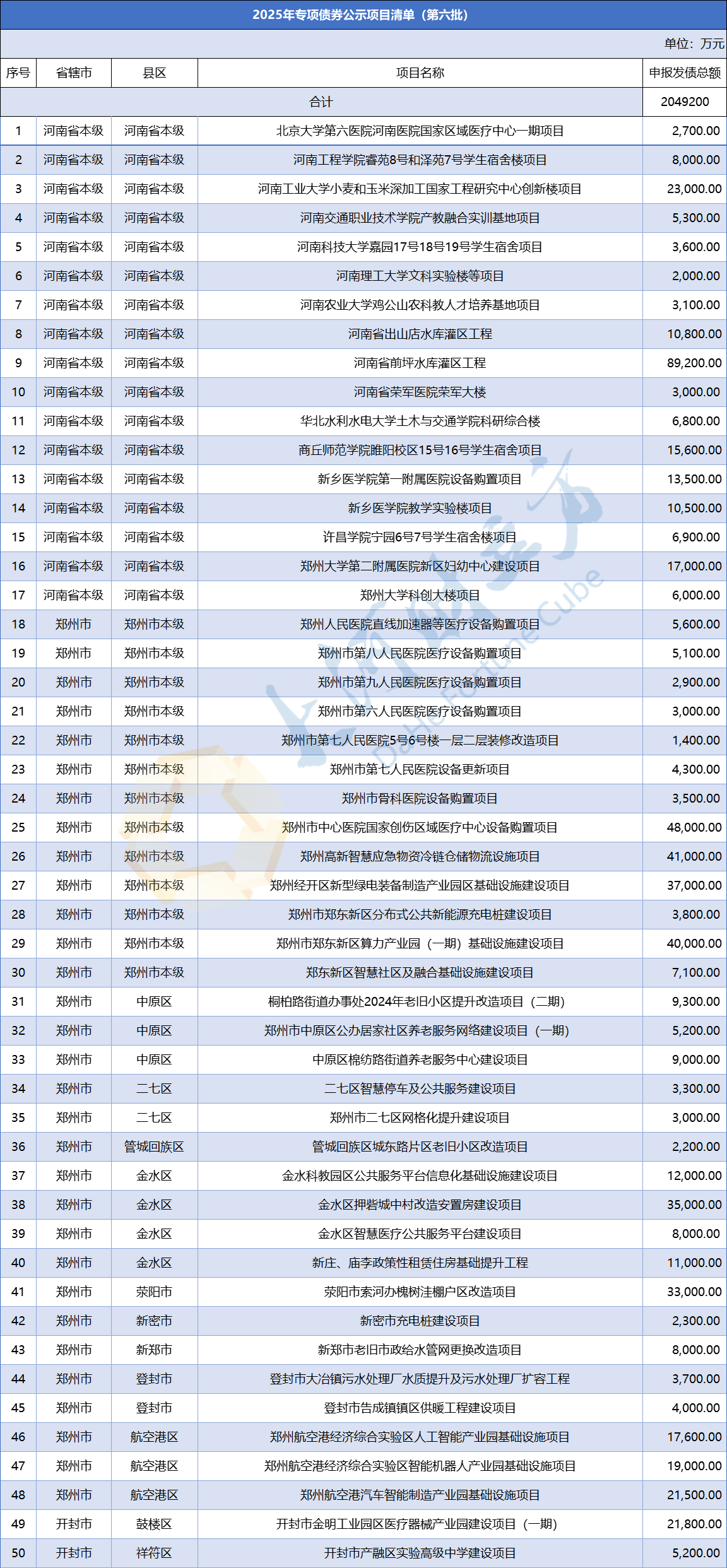 【大河财立方消息】11月18日,河南省财政厅公示2025年第六批通过发行资料评审的专项债券项目(非拟发行项目),公示时间为2025年11月18日~2025年11月22日。