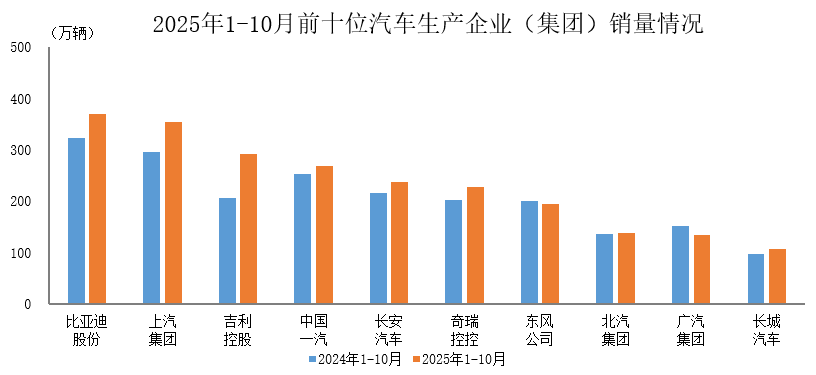 【大河财立方消息】11月19日,据中国汽车工业协会统计分析,2025年1-10月,汽车销量排名前十位的企业(集团)共销售2328.1万辆,占汽车销售总量的84.1%。