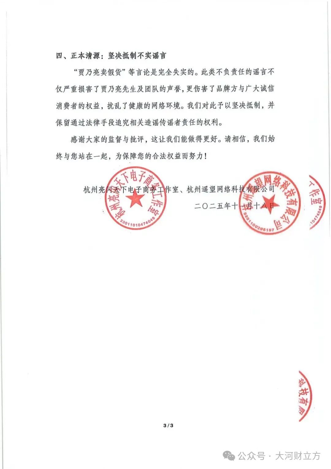 最后,贾乃亮工作室特别承诺,正与品牌方协商将“批次信息一致且未开封”的产品送往具备资质的专业机构检测,并强调“将负责到底”。