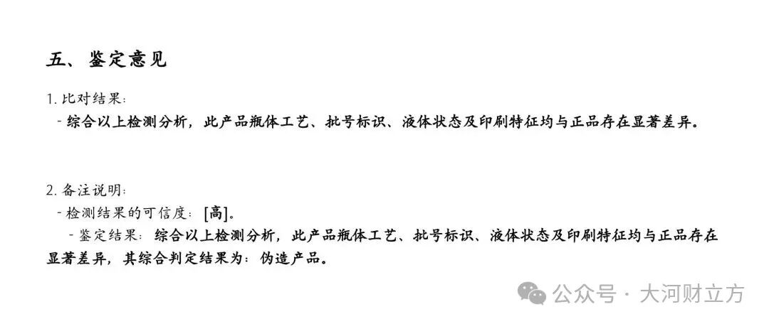 在向商家申请退货退款遭拒后,消费者转而寻求平台介入,平台提出需提供权威质检报告作为维权依据。为核实商品真伪,消费者自行委托第三方检测机构,该机构通过比对包装字体、瓶盖浮雕及瓶体结构等特征,出具了“综合判定结果为:伪造产品”的鉴定结果。