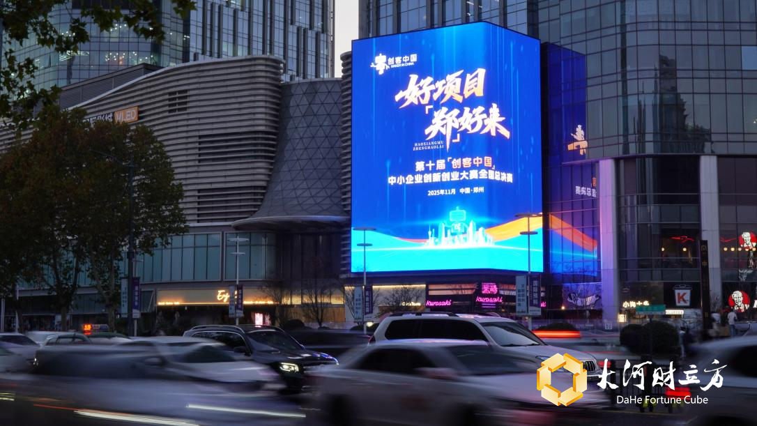 【大河财立方 见习记者 岳炎霖 文 王子阳 摄影】初冬的郑州,寒意渐浓,而这座城市的创新热情却持续升温。11月22日起,郑州“亚细亚之光”与“万达坊双子星”陆续点亮户外地标大屏,向第十届“创客中国”大赛总决赛的参赛创客们致敬。