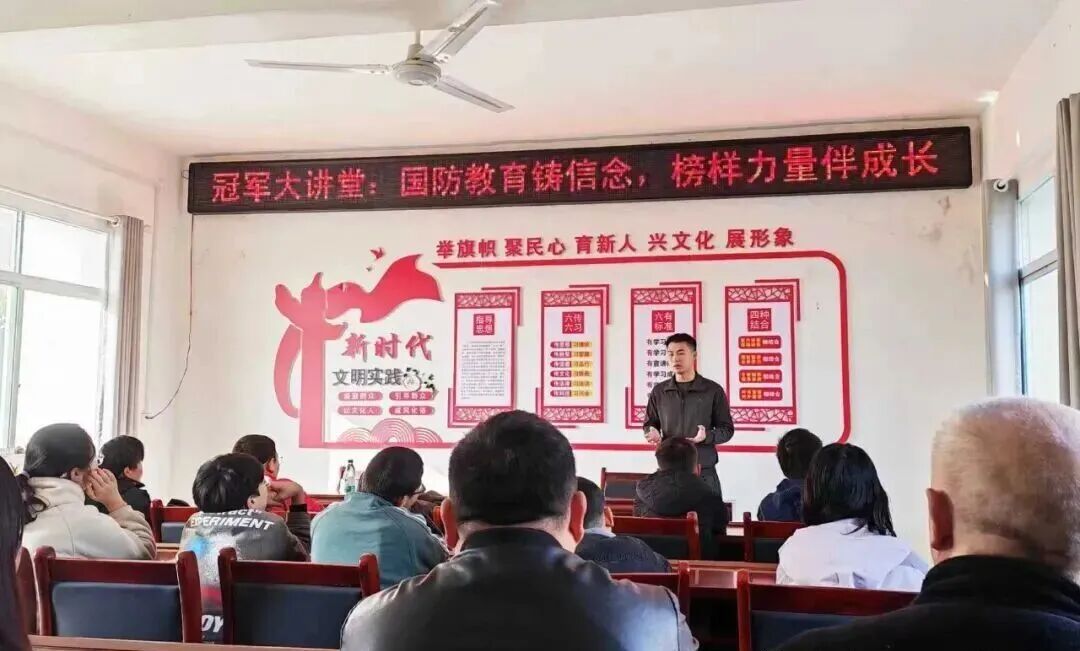 近日,邓州市张村镇冠军村的孩子们迎来了一堂特别的周末课程。一场以“国防教育铸信念,榜样力量伴成长”为主题的国防励志课生动开讲,来自河南工业大学的退役大学生士兵张果与孩子们分享了他的高原戍边故事,在欢声笑语中,为孩子们播下了关心国防、立志报国的种子。