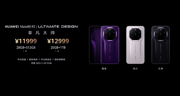 其中,华为Mate 80系列起售价4699元,华为Mate 80 Pro系列起售价5999元,华为Mate 80 Pro Max起售价7999元,华为Mate 80 RS非凡大师起售价11999元。上述机型将于11月28日10时08分正式开售。