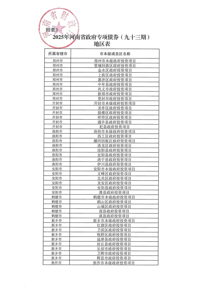 【大河财立方消息】据河南省财政厅消息,11月26日,河南省在北京成功发行政府债券737.5865亿元。再融资一般债券55.7924亿元,用于偿还存量债务;再融资专项债券56.6359亿元,用于偿还存量债务和置换存量隐性债务;新增一般债券47.788亿元,主要用于河南省基础设施项目建设;新增专项债券577.3702亿元,其中,52.1644亿元用于存量政府投资项目,43.9757亿元用于补充政府性基金财力,481.2301亿元投向市政和产业园区基础设施、新型基础设施、保障性安居工程、城乡冷链物流设施和交通基础设施等重点领域984个项目。