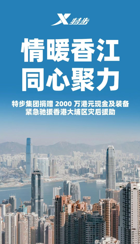 特步集团第一时间启动紧急响应,捐赠2000万港元现金及装备,用于香港大埔受灾同胞灾后安置所需,为同胞送去即时保障与温暖。