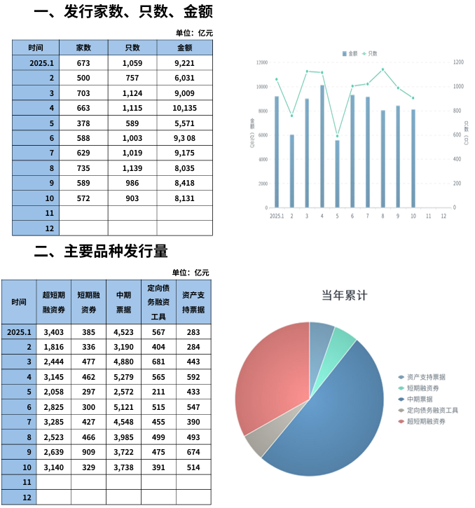 【大河财立方消息】中国银行间市场交易商协会近日披露2025年10月债务融资工具发行统计数据。