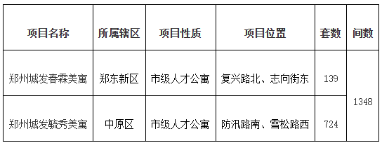 【大河财立方消息】近日,郑州市住房保障和房地产管理局公示2025年郑州市第十一批人才公寓配租方案,涉及郑州城发春霖美寓、郑州城发毓秀美寓两个项目,共配租房屋1348间。