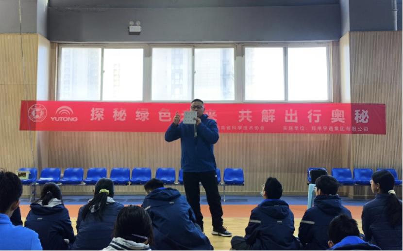 此次科普进校园活动紧紧围绕“科技改变生活,创新赢得未来”科普月活动主线,集知识分享、实车体验、实践教学于一体,既是落实《教育强国建设规划纲要(2024—2035 年)》中“将科普纳入素质教育”要求的生动实践,更是践行河南省“十五五”“教育科技人才融合发展”目标的有力举措。作为新能源商用车产业链主企业,宇通主动承接河南省科普项目,精准对接校园教育需求,将自身技术优势转化为科普资源,从“出行、物流、作业”案例到校园静态体验区搭建,通过真实车辆展示和技术原理分享,让原本遥不可及的前沿科技走进学生视野。