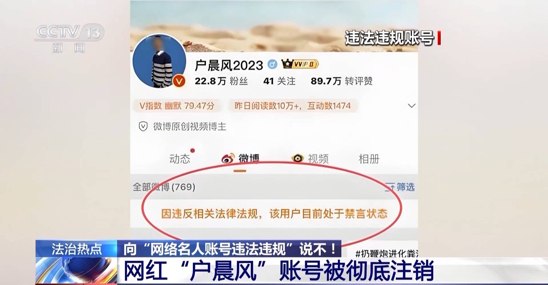 网络账号“户晨风”在多个平台长期编造所谓“安卓人”“苹果人”等煽动群体对立言论,各平台相关账号已关闭。