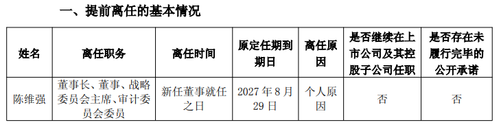 另外,公告披露,公司全体董事一致推举副董事长史文伯代为履行董事长职责,代行职责的期限自陈维强辞职申请生效之日起至公司董事会选举产生新任董事长之日止。