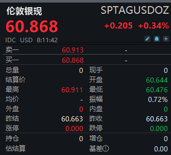【大河财立方消息】12月10日,贵金属继续高开,白银表现抢眼,继昨日大涨突破60美元/盎司之后,今日再度上涨。伦敦银现早盘报60.868美元/盎司,日内涨0.34%。今年以来,银价已经涨超110%。