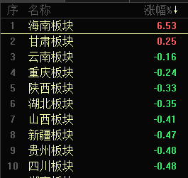 【大河财立方消息】12月10日午后,A股海南板块涨幅扩大。截至发稿,海南板块整体涨幅6.53%,远超第二名的甘肃板块(涨幅0.25%)。同期A股大盘下跌0.83%。