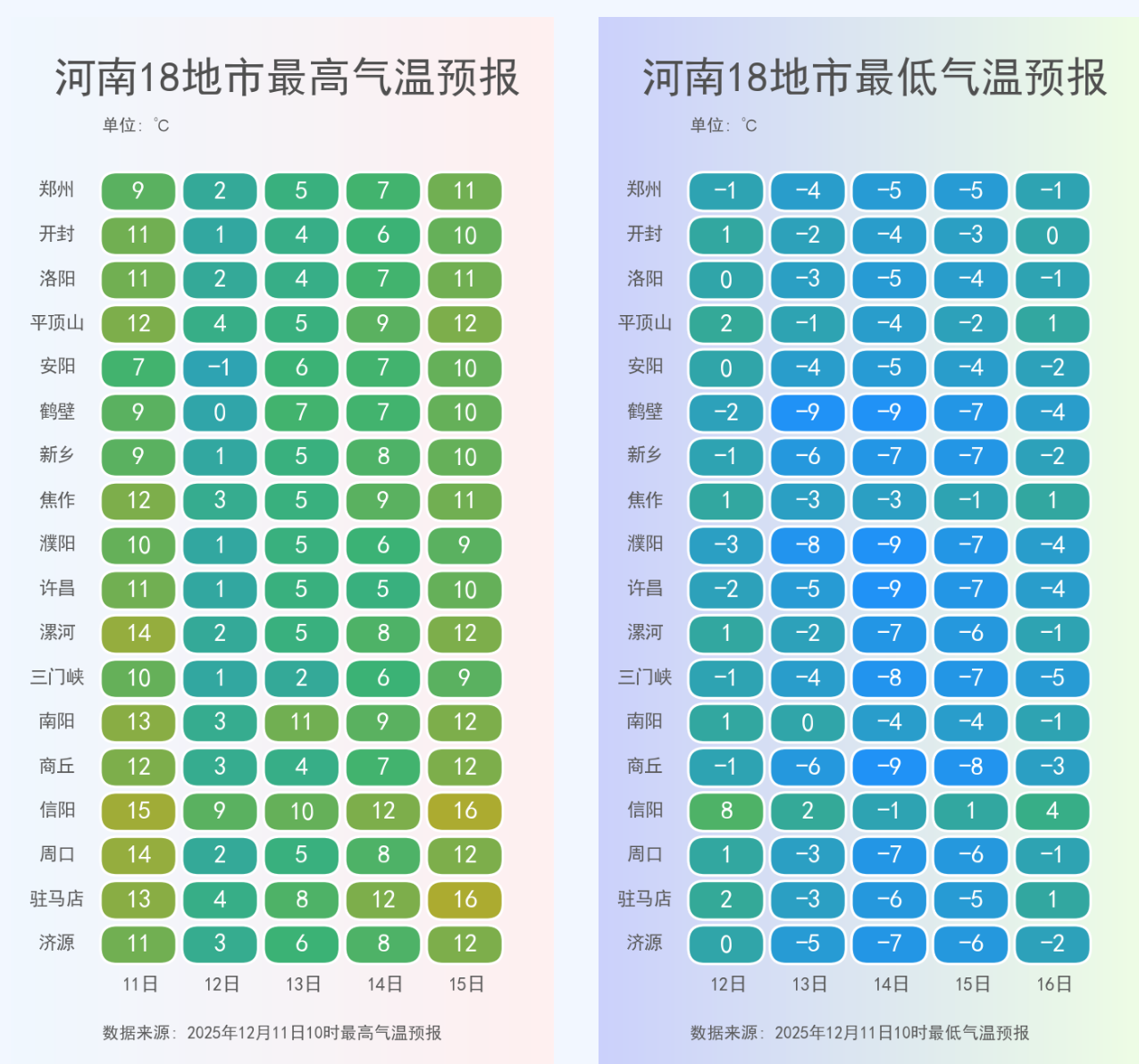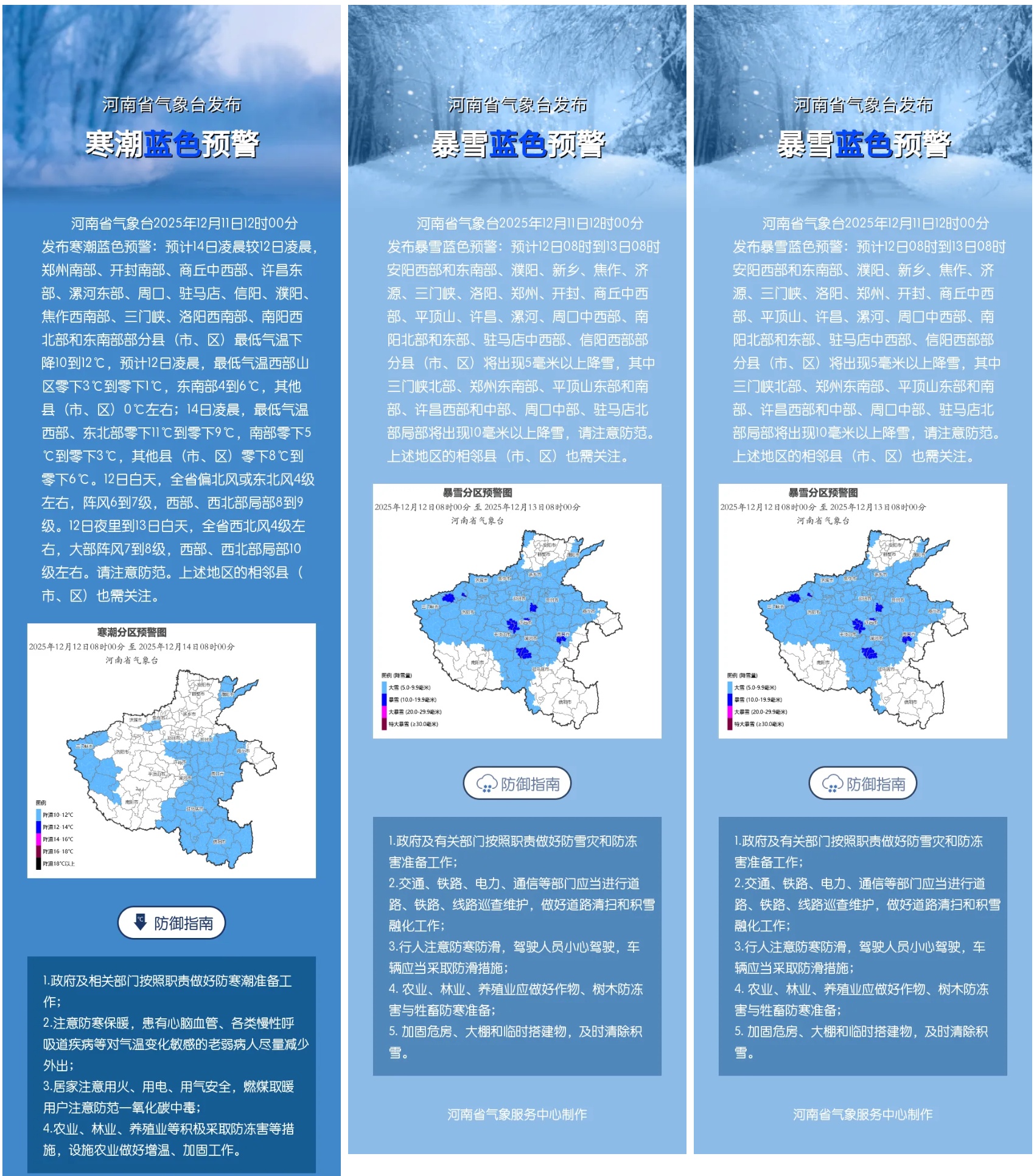 未来三天天气预报(河南省气象台2025年12月11日12时预报)