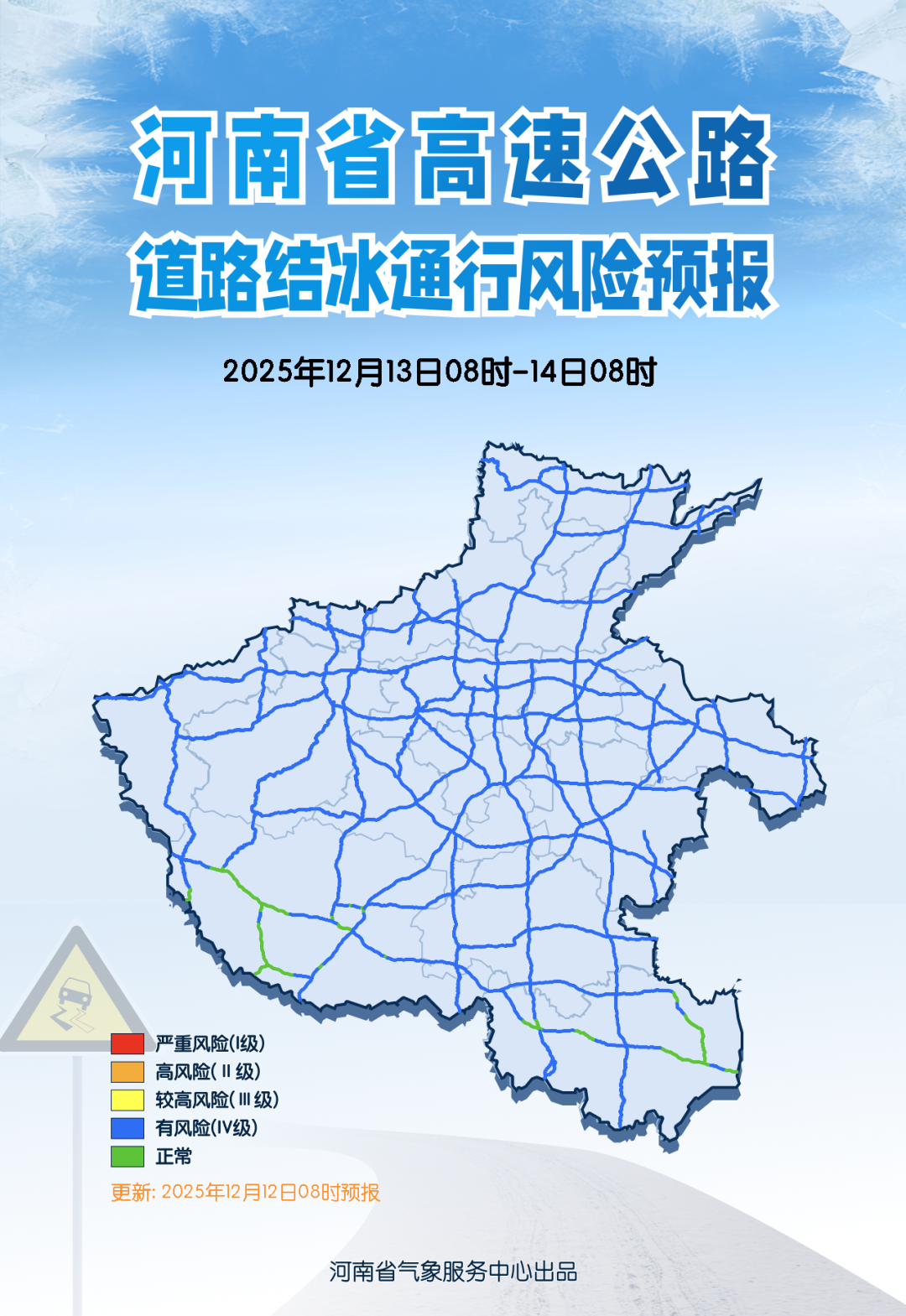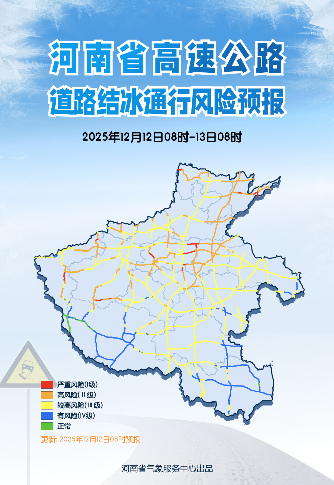 受降雪影响,今天全省大部地区高速公路有较高道路结冰通行风险,其中,西部、中部局部有严重风险,注意出行安全。