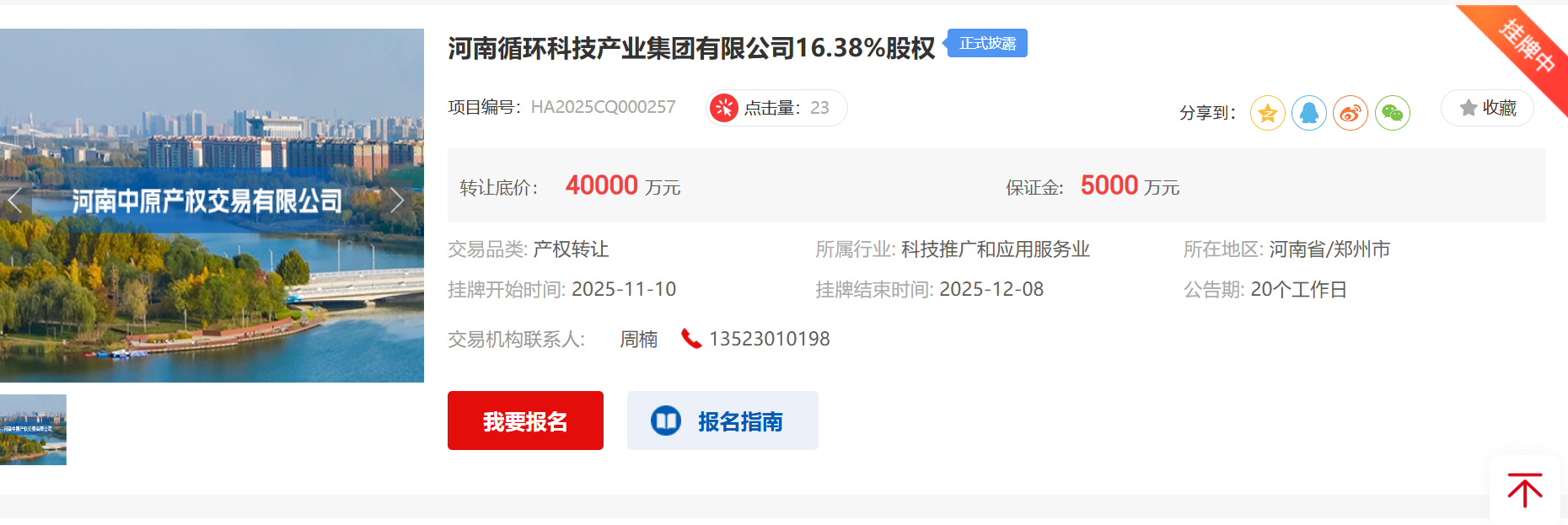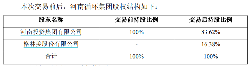 此前,河南循环科技产业集团有限公司16.38%股权挂牌转让,转让底价即为4亿元。