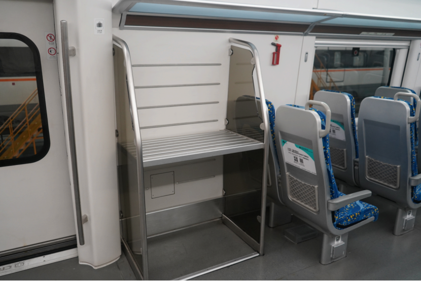 此外,扶手拉握更舒适,针对站立乘客的需求,车门通过台区域的扶手杆由原来的单一竖杆升级为“竖杆+环形”结构,并增加拉环设计,增大扶握空间,满足不同身高乘客的站立支撑需求,在拥挤车厢内更能保障乘客安全。