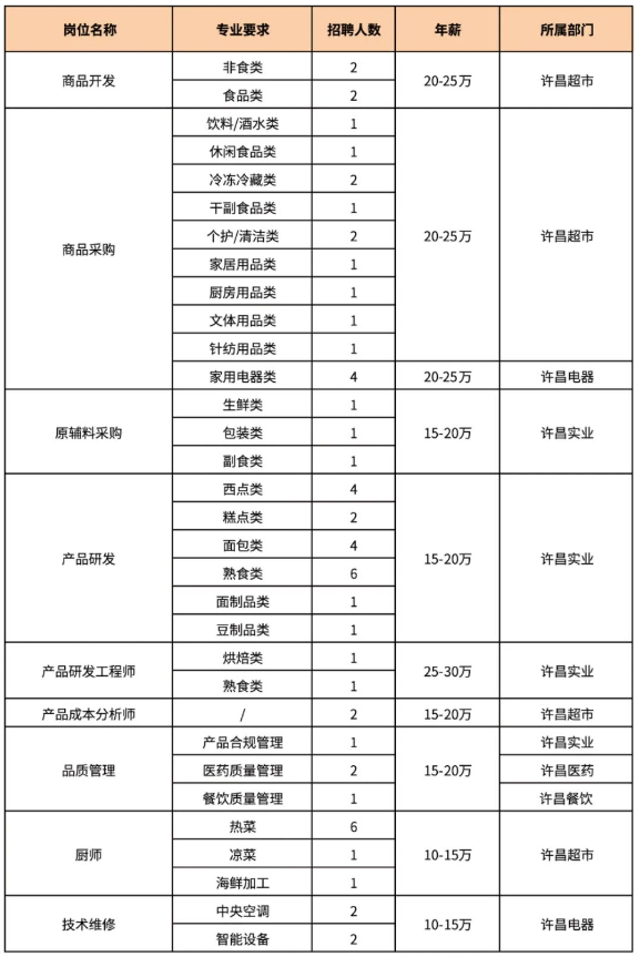 【大河财立方消息】12月15日,胖东来商贸集团发布招聘公告,公开招聘60名技术岗位人员,涉及商品开发、商品采购、原辅料采购、产品研发、厨师等岗位,年薪最高30万元。