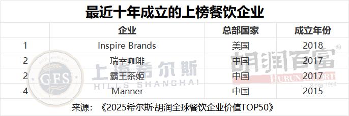 2025希尔斯·胡润全球餐饮企业价值TOP50