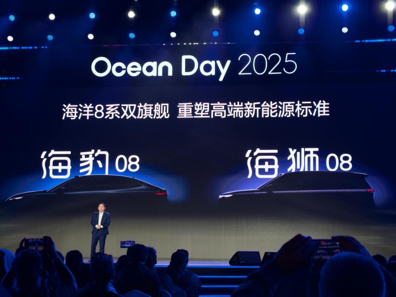 海洋网通过四年时间稳固基本盘之后,也将战略重心指向了高端化与智能化。活动现场,官方正式公布了全新高端旗舰“海洋8系”产品,包括大型旗舰轿车“海豹08”与大型旗舰SUV“海狮08”。