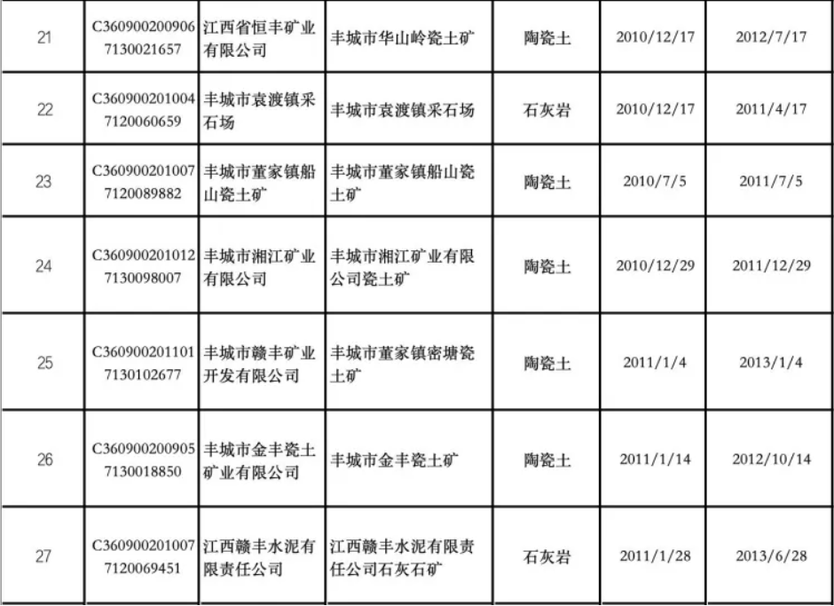 从上述27宗采矿许可证的矿种来看,17宗矿种为陶瓷土矿,7宗为石灰岩,其他矿种包括高岭土、石英岩。这些不同的矿种矿山,其中就包括了投资者关注度较高的锂矿矿山。