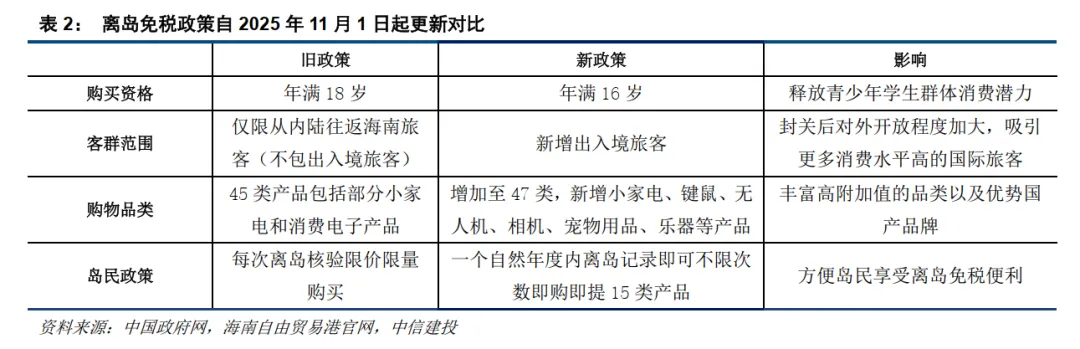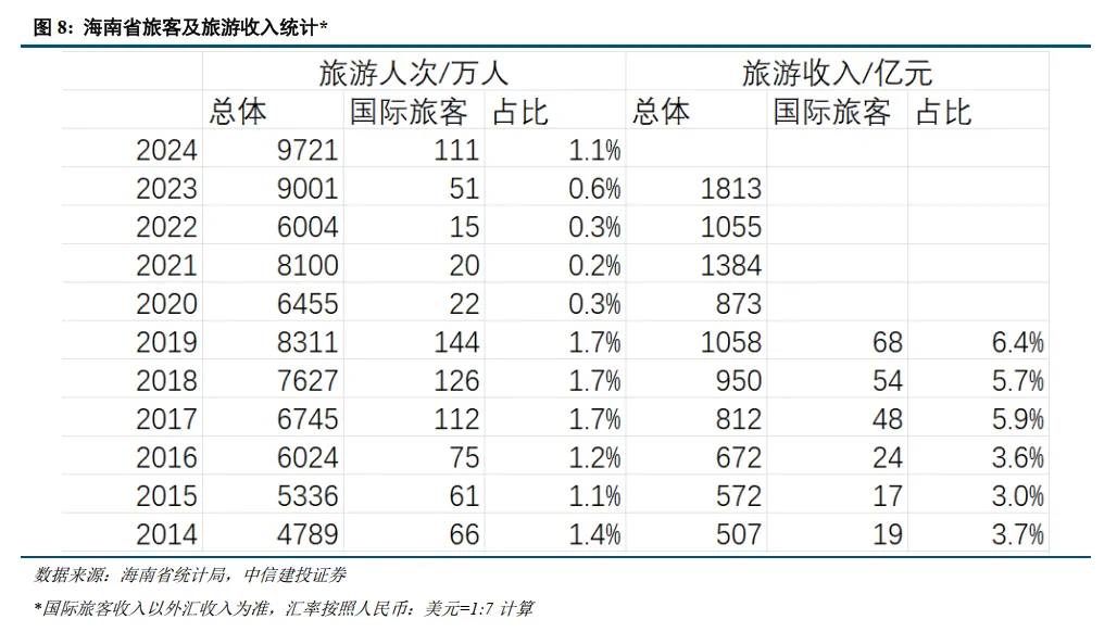 【3】根据目前海南省政府的规划,海南封关后目标依旧是加快建设国际旅游消费中心。一方面,加快打造独具影响力的文旅消费新场景。将建设一批国际文旅IP和项目,并且同时推进现有的景区景点焕新升级,为游客提供更加丰富多元的旅游体验。另一方面,进一步营造安心、放心、开心、舒心的旅游消费环境。海南省2024年社零总额为2406亿元,而海南离岛免税经营主体销售额470.3亿元(离岛免税部分为309.4亿元),离岛免税在海南经济中一直占有举足轻重的地位,因此,近期海南省出台了离岛免税岛民即买即提的优惠政策也凸显了鼓励态度: