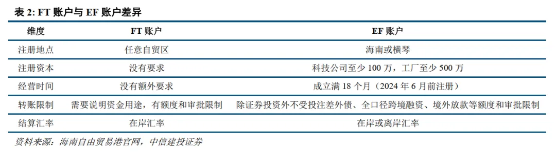 相比于传统FT账户,EF账户在开户方面受到注册地点、注册资本、注册时间等方面的限制,两个账户不能同时拥有,若主体已开立FT账户且满足EF账户开立条件,需注销原FT账户,转而开立EF账户。