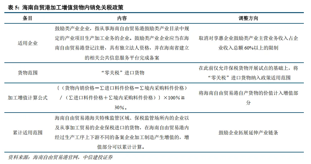 【1】目前的封关政策更多针对的是进出口和制造业,即实施更加优惠的货物“零关税”政策。目前“一线”进口的“零关税”商品税目比例将由21%提高至74%,在岛内享惠主体之间可以免进口税收流通,加工增值达到30%的可免关税销往内地。这方面的“免税”政策与实际消费相关度较低,与离岛免税不相关。