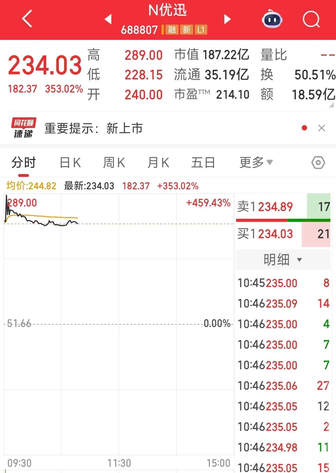 新股方面,N优讯盘中上涨超过450%,沐曦股份盘中跌近10%,摩尔线程盘中跌近6%。