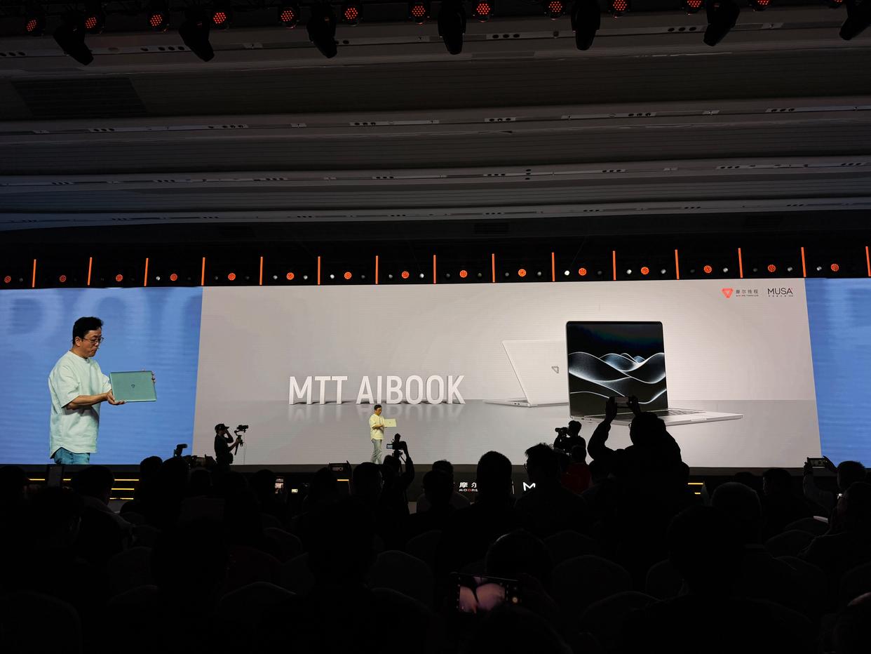 12月20日,摩尔线程创始人、董事长兼CEO张建中在摩尔线程首届MUSA开发者大会上发布AI算力本MTT AIBOOK笔记本。目前该笔记本已在京东开放预售,32GB、1TB 版本预售价9999元。