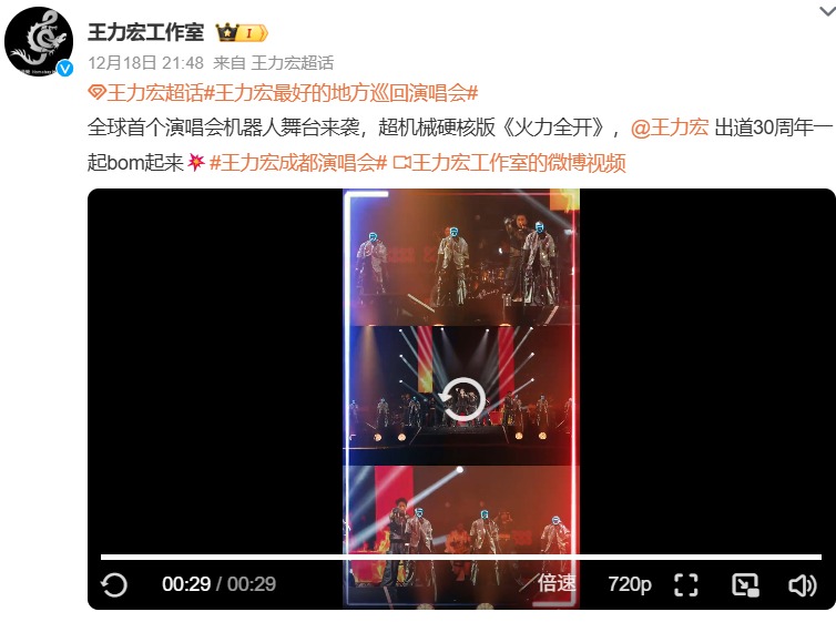 @王力宏工作室称,这是“全球首个演唱会机器人舞台”。