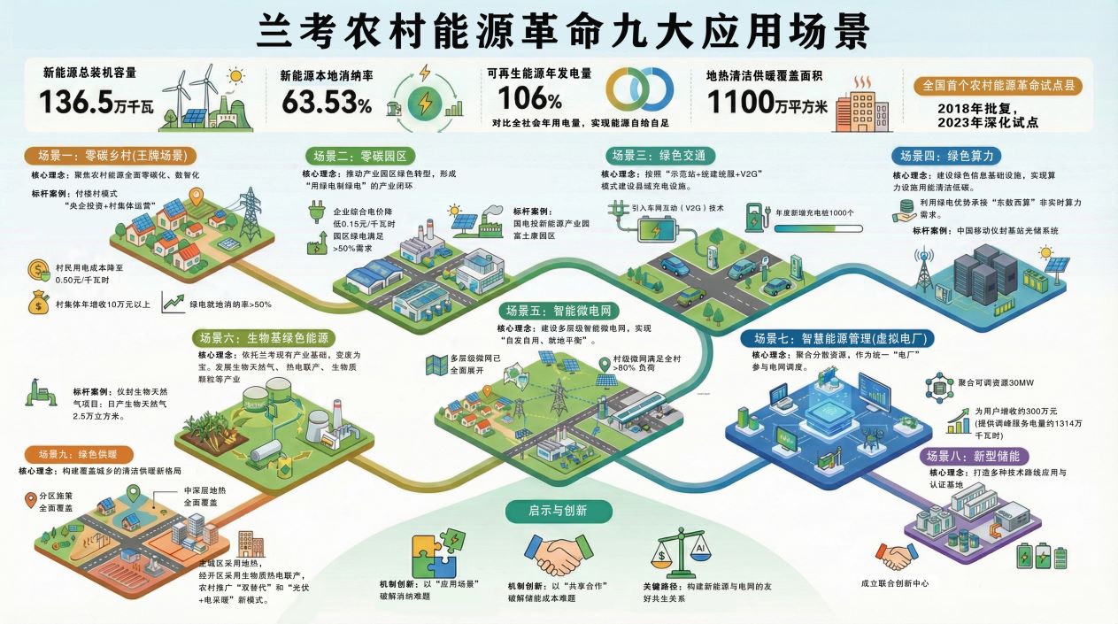 通过九大应用场景的系统推进,兰考实现了从“有新能源”向“用好新能源”的转变,使能源革命兼顾了技术,又饱含着温度。