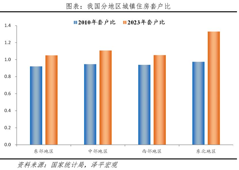 我们在《中国住房存量报告》提到:经过多年发展,2023年中国城镇人均住房建筑面积约35.9平方米;城镇住房套户比为1.07,一线、二线、三四线城市的套户比分别为1.01、1.09、1.12,一线城市住房供给阶段性达到静态平衡。