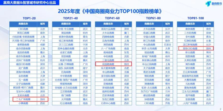 【大河财立方 记者 司高妍 杨霄】中国100个最强的消费商圈,河南商圈获其三席,二七商圈首次跻身TOP20。近日,赢商股份在深圳发布的《2025年度全国商圈商业力指数榜单》(以下简称全国商圈百强榜),引起国内商界与消费者热议。