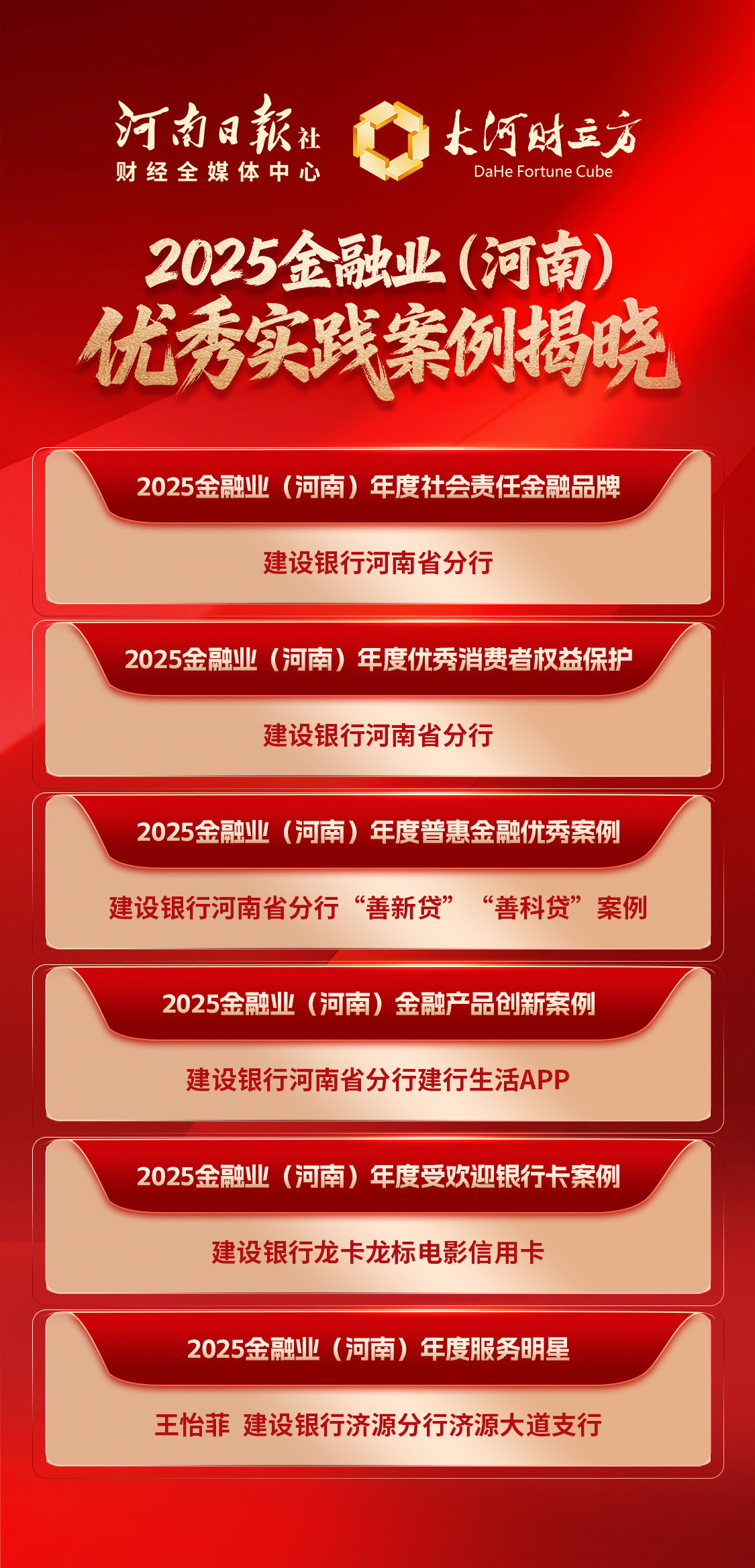 据了解,建行河南省分行共有6项入选2025金融业(河南)优秀实践案例: