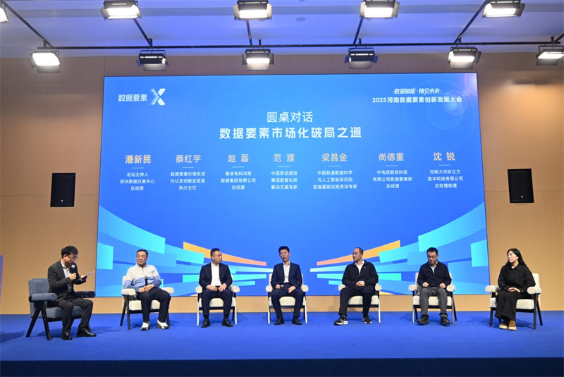 此外,活动围绕“数据要素市场化破局之道”这一核心议题设置圆桌对话环节,邀请郑州数据交易中心总经理潘新民担任嘉宾主持,来自数据要素价格形成与认定创新实验室、河南数据集团有限公司、中国移动通信集团、中国联通数据科学与人工智能研究院、中电信数政科技有限公司、河南大河财立方数字科技有限公司的六位嘉宾,结合自身实践经验与前沿思考,从政策落地、企业实践、技术支撑、资本赋能多个维度,深入探讨数据要素市场化价值化的实践路径与发展感悟,凝聚行业共识。